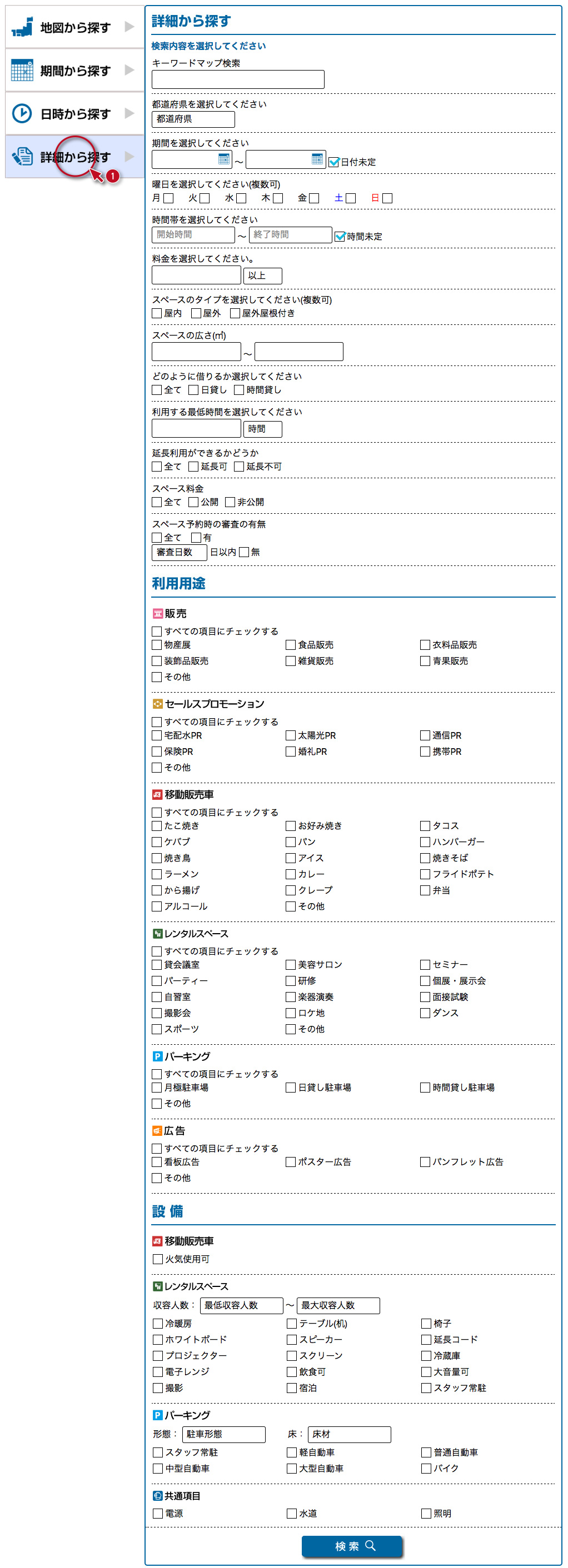 右側メニューの「詳細から探す」からお探しの詳細を入力してください。