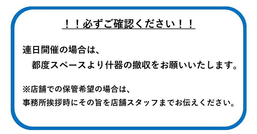 1.利用者は、事由の如何を問わず、スペースの利用を終了した場合、あらかじめ提供者との間で合意した期日までに、自己の費用及び責任において、当該スペースに持ち込んだ本件備品や設備等を撤去の上、当該スペースを利用開始当時の原状に復した上で、同スペースを提供者に対して明け渡さなければならない。