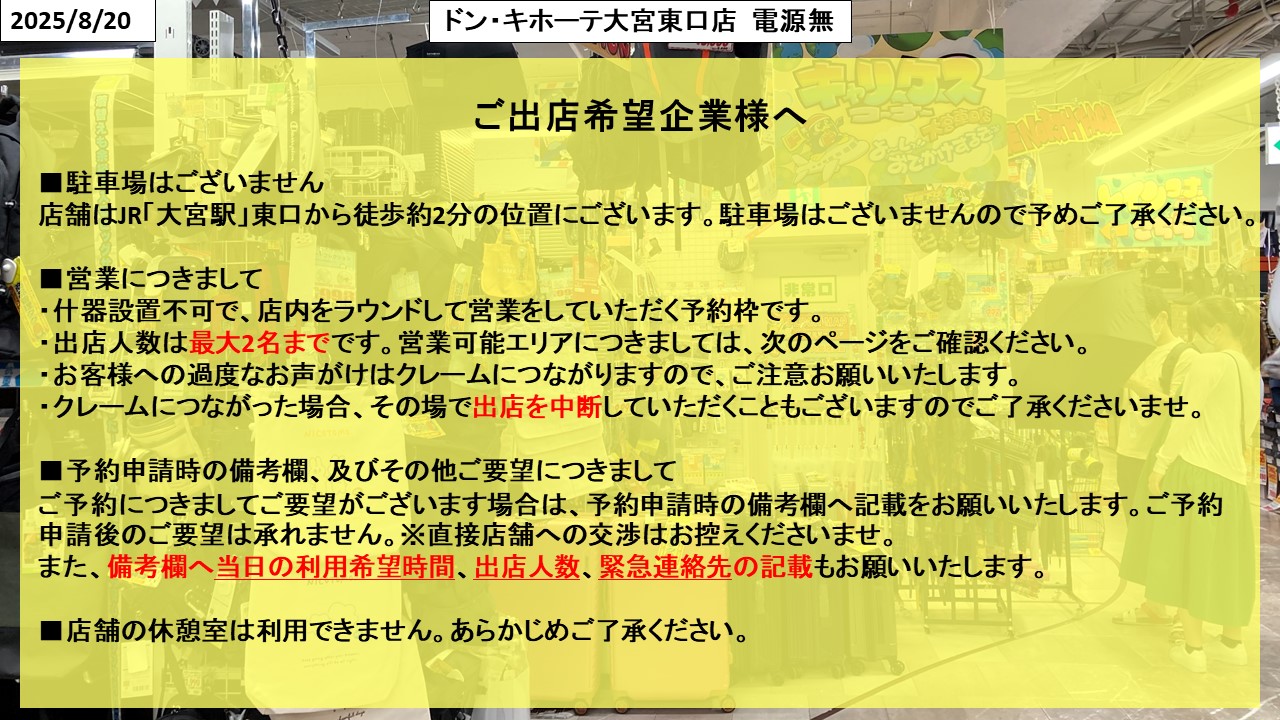 【月予約】ドン・キホーテ大宮東口店/サンプリングスペース