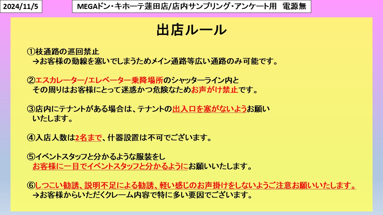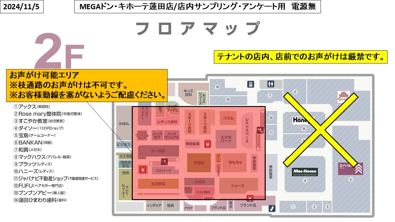 MEGAドン・キホーテ蓮田店/店内サンプリング・アンケート用
