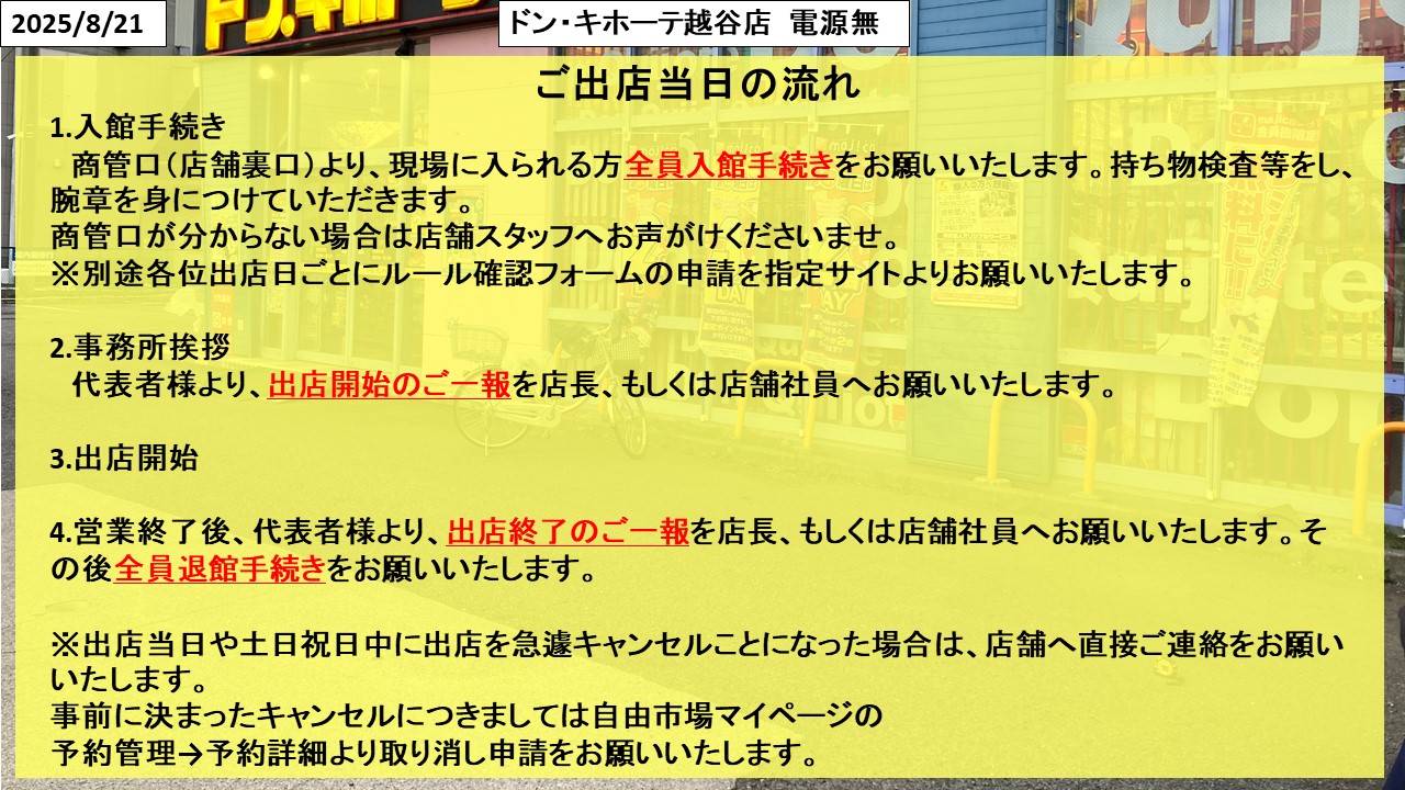 この「自由市場利用規約」(以下「本規約」という。)は、日本商業施設株式会社(以下「当社」という。)が運営・提供するスペースマッチング事業である「自由市場事業」サービス(理由の如何を問わず、サービスの名称又は内容が変更された場合には、当該変更後のサービスを含むものとする。以下「本サービス」という。)を利用する者が遵守しなければならない事項を定めたものである。