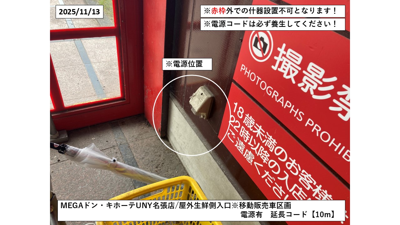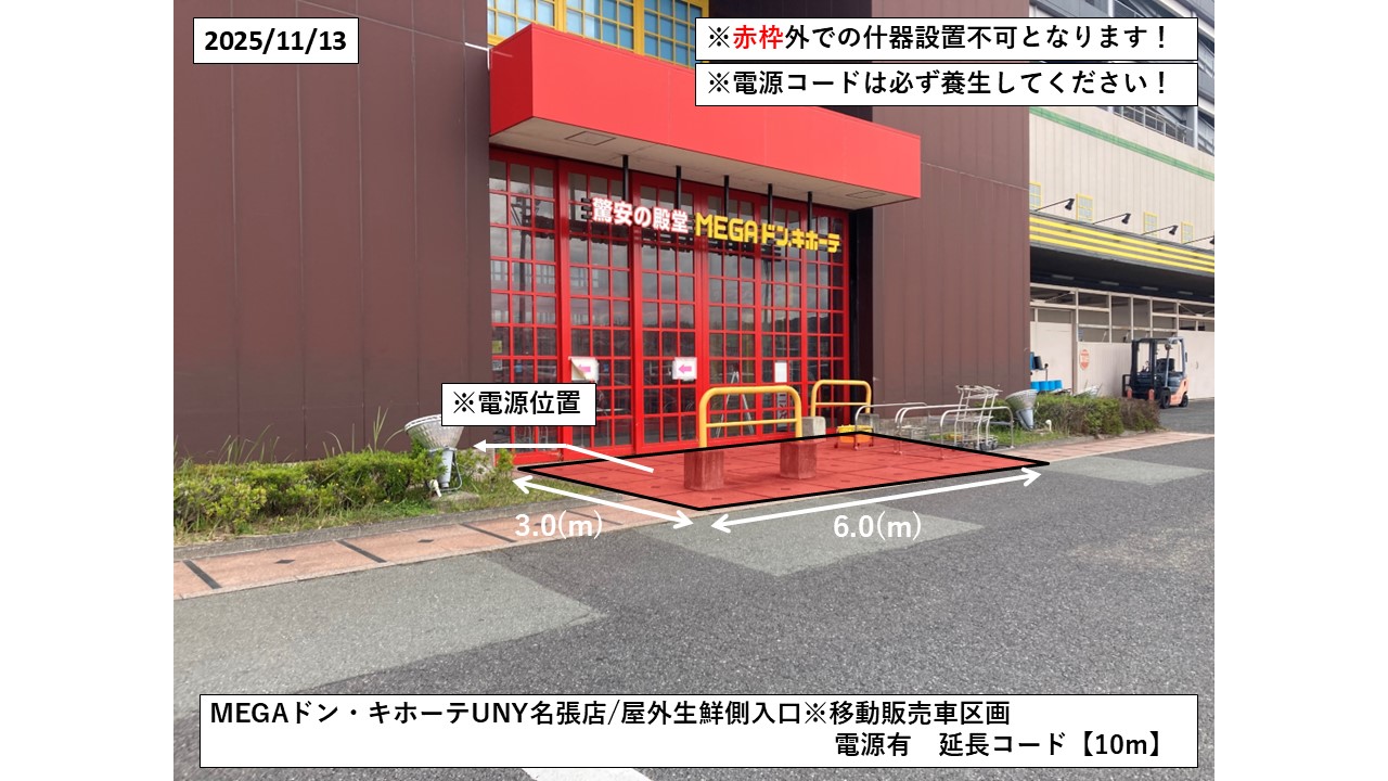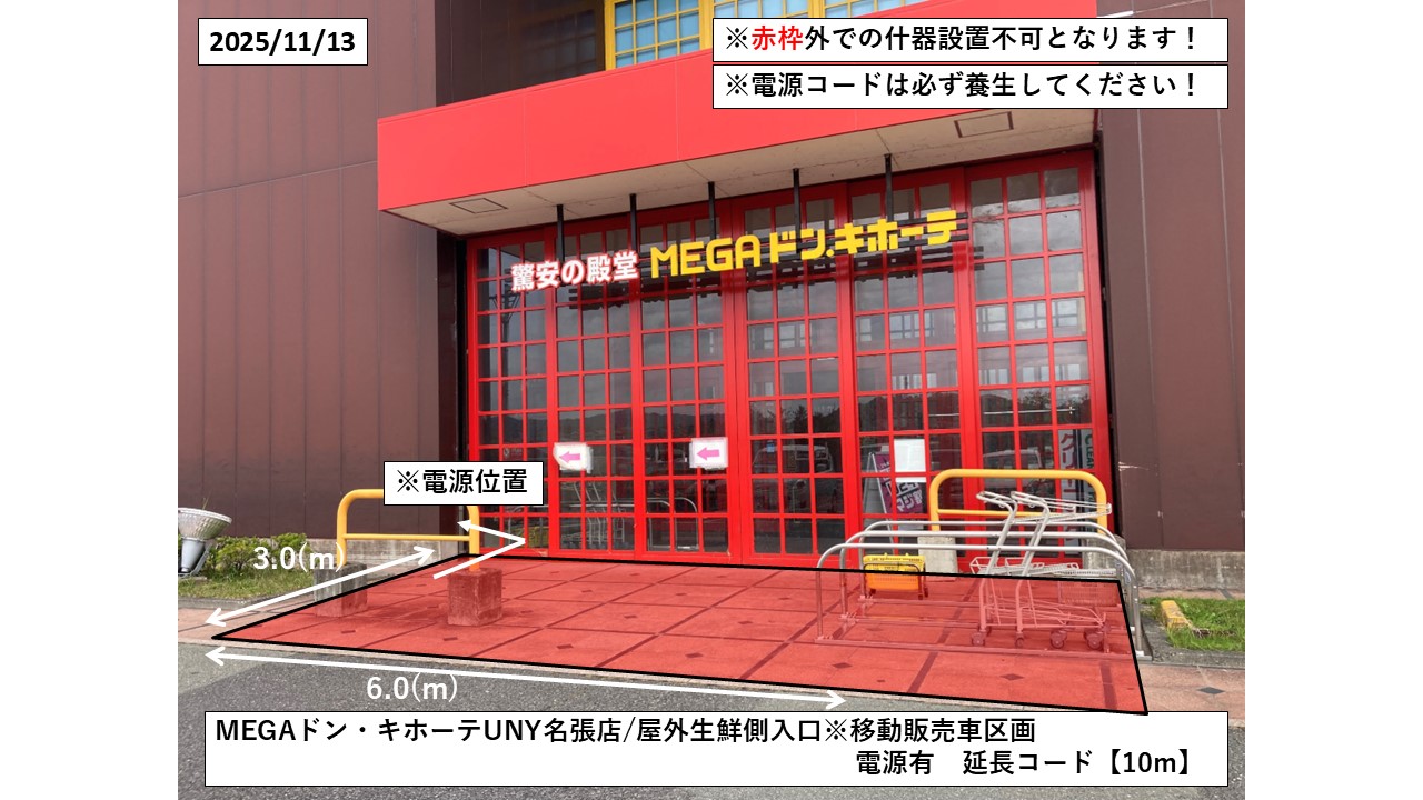 MEGAドン・キホーテUNY名張店/屋外生鮮側入口※移動販売車区画